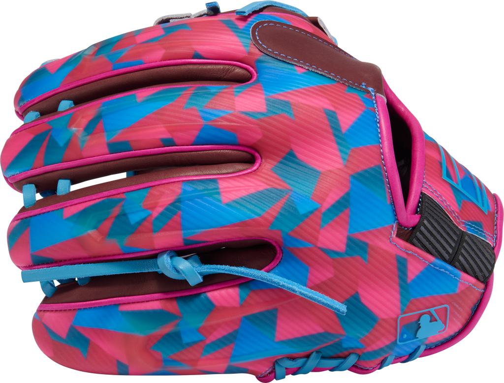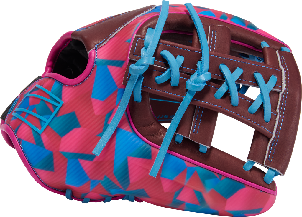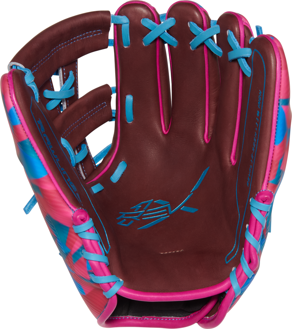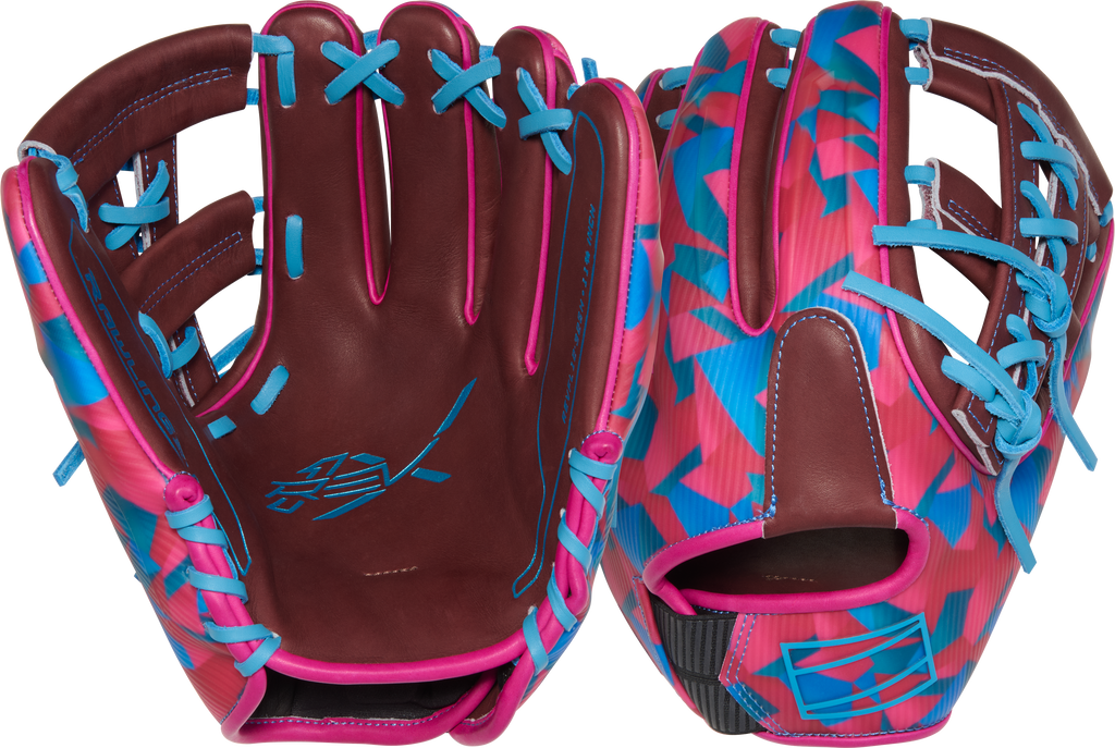 Show off your personality on the diamond with the Francisco Lindor REV1X 11.75-inch infield glove! This exclusive design features a vibrant magenta and teal geometric shellback paired with a rich burgundy palm and bright blue laces for a look that’s as fearless as your game. Crafted for players who want to stand out while playing at the highest level, this REV1X perfectly blends art, innovation, and elite performance.