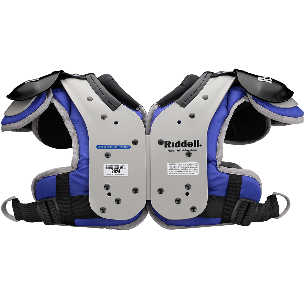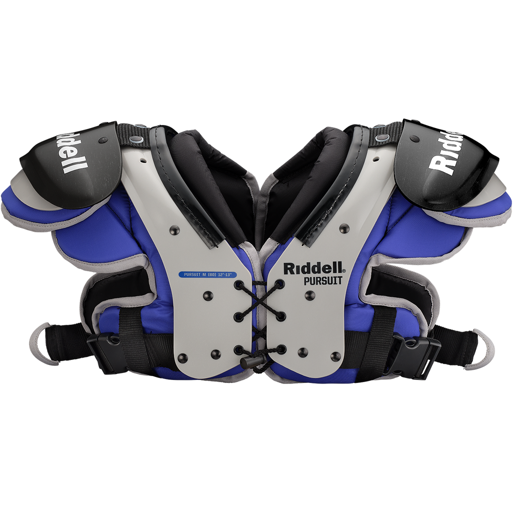 The updated Riddell Youth Pursuit Football Shoulder Pad are still a lightweight choice for aspiring youth players. The Pursuit includes Riddell's Z-Fit belt system that helps secure the pads using high-strength nylon clips. Open cell foam keeps the weight of the shoulder pad down and is used in the body cushion and the integrated deltoid pads. The flat pad design is great for youth players as its sits low on the shoulders and allows for maximum head movement.