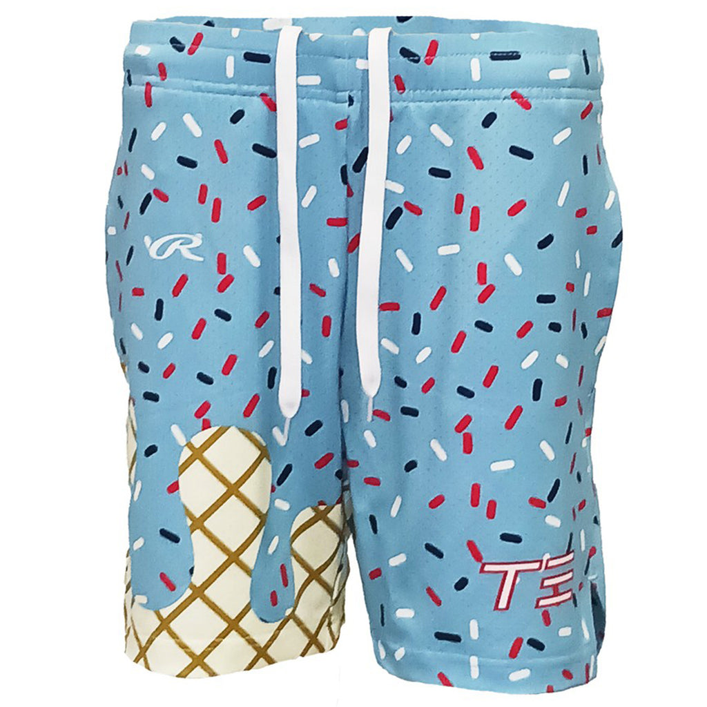 Team Express Men’s Baseball Shorts with Drawstring Waist – 7" Inseam Workout Shorts with Pockets – Stretch Woven Fabric – Ice Cream Print